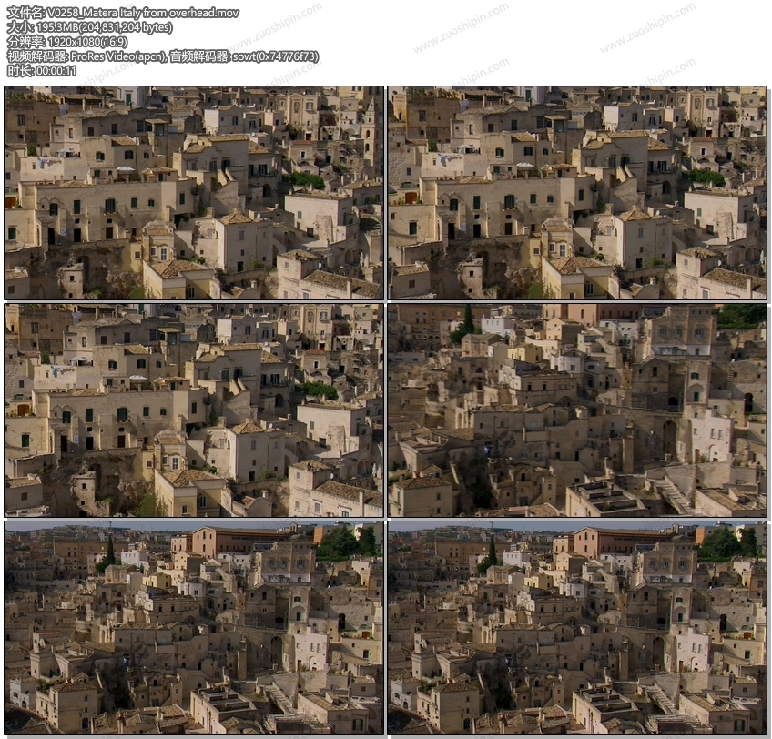 马泰拉意大利的高空拍摄,老街道,鹅卵石建筑和街道。