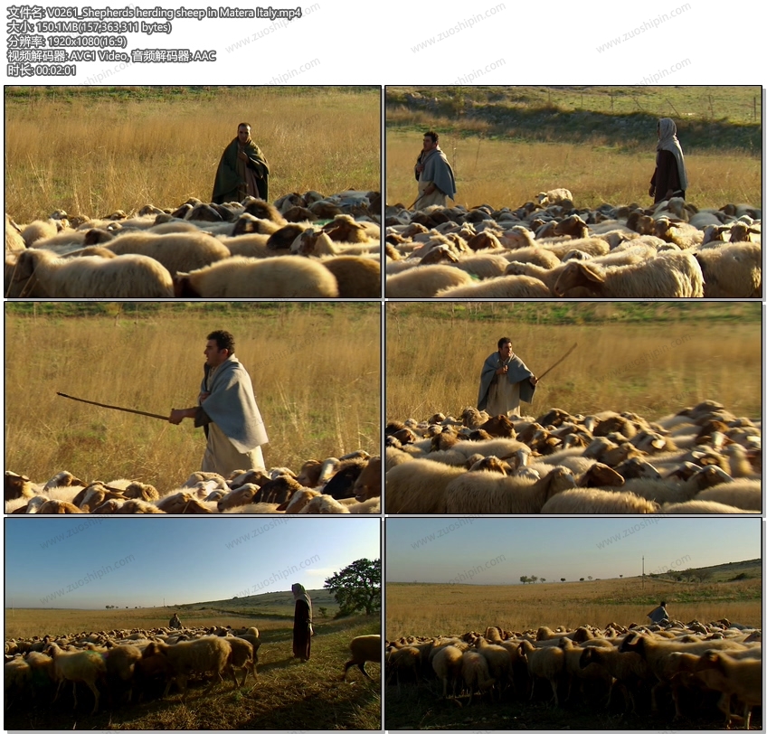 一群牧羊人在意大利马泰拉赶羊群实拍视频素材,羊群,牧羊,放羊,视频素材