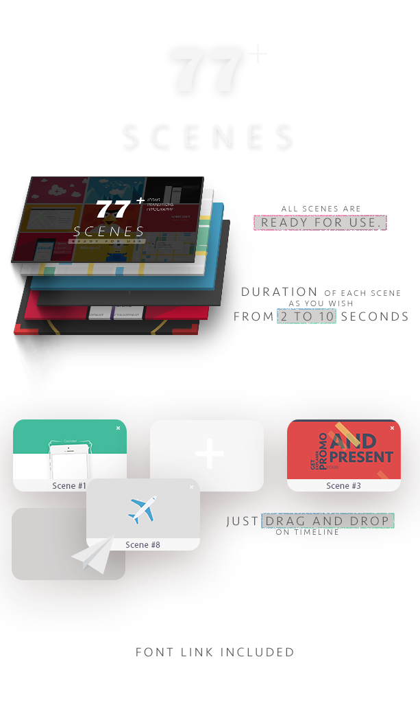 - Each scene starts with transition:That’s why you can use it in any place of project or inside another projects.