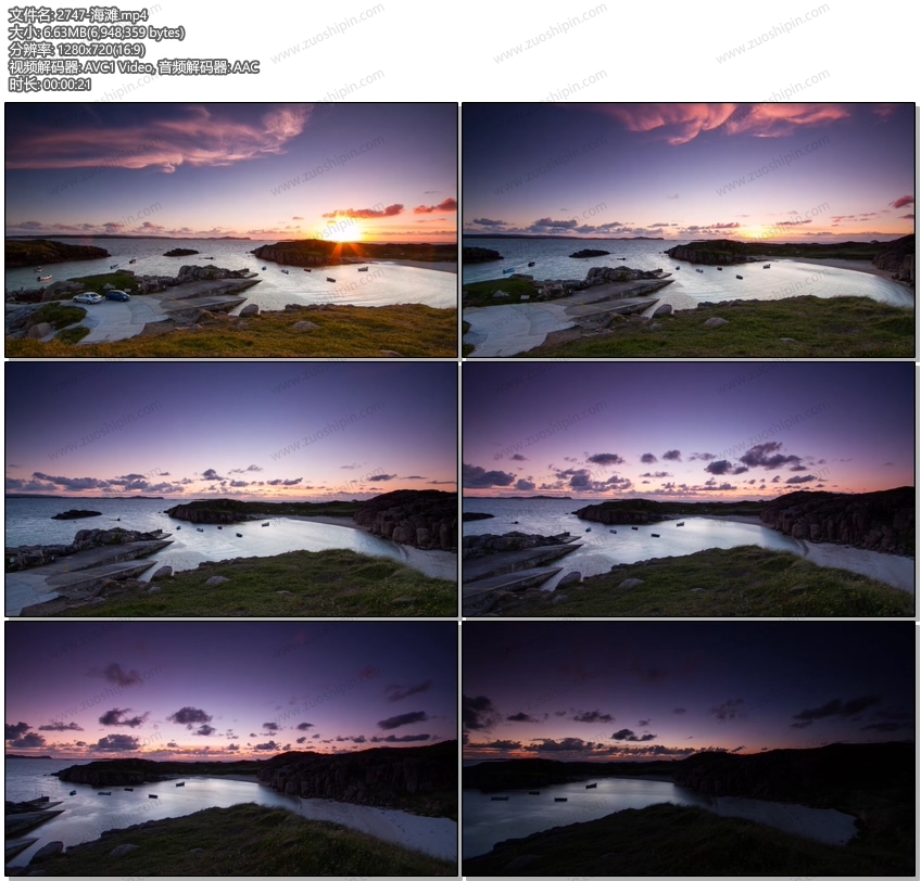 粉色的天空海岸线的日落视频