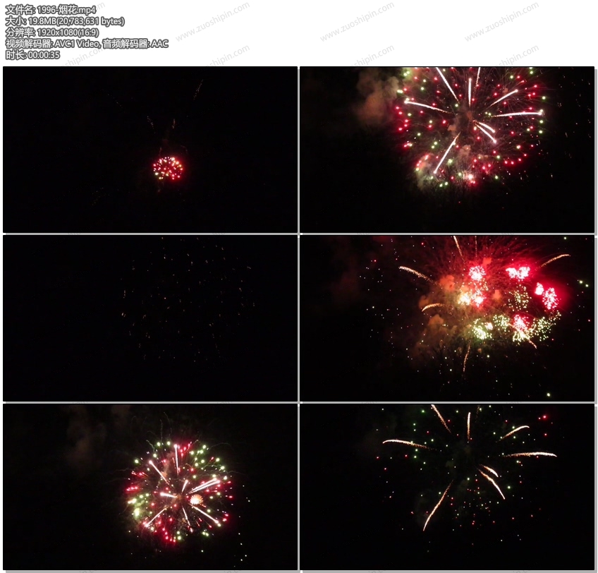 红色和金黄礼花烟花烟火4K视频素材Fireworks_109___4K_res