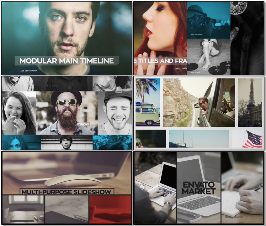 - Dynamic Slideshow suitable for a number of different Projects. Product or Service Promos, Channel / Show Openers, Fashion / Portrait / Travel / Holiday / Wedding Slideshow, Special Occasion Videos, Corporate Intro, also the last collage Scene can be used as Ending for your Montage/Showreel Videos, or as a Logo Animation.