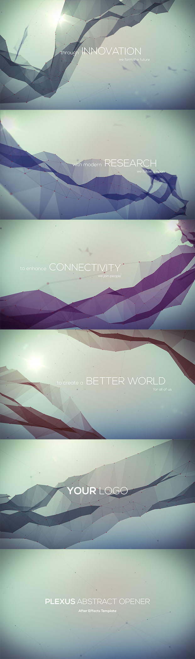 A creative, network style, abstract graphical video opener using quotes or keywords to present your business, company or service.