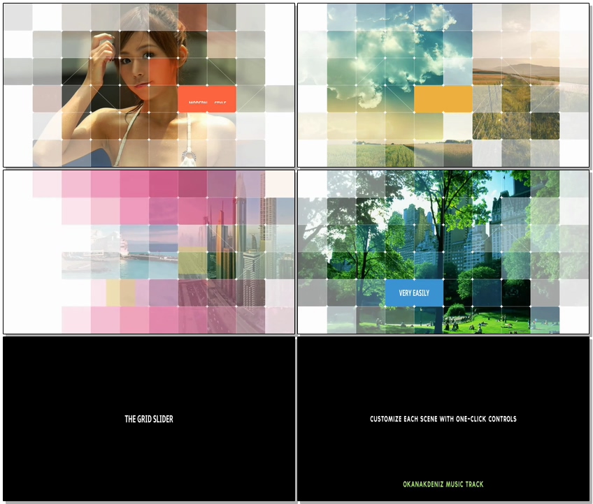 The Grid Slides Builder After effects CS 5.5 Full HD templates pack coming with one storyboard and 10 prebuilt slides aep files. This package is really highly modulable and very flexible. So you are able to customize our storyboard or create your own from scratch in minutes.