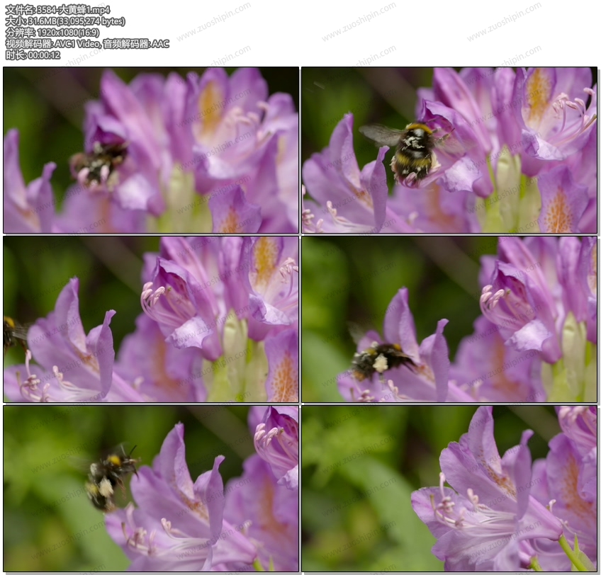 粉红色的鲜花蜜蜂采蜜视频素材Bee on Flower