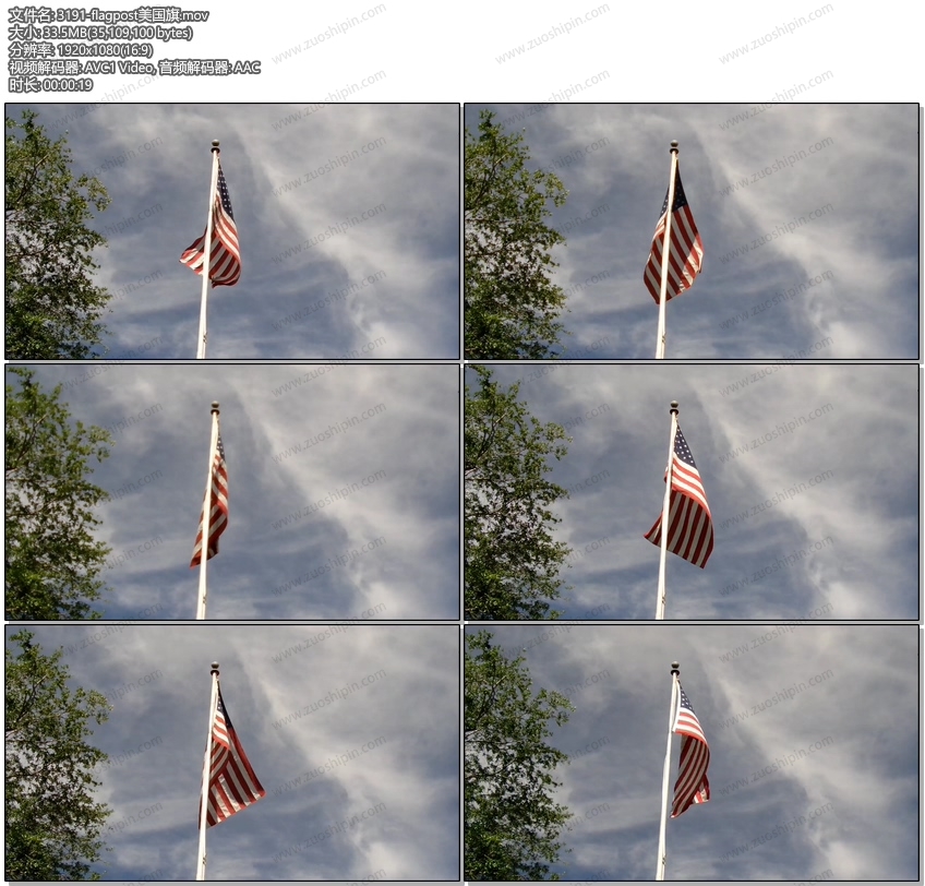 晴朗的蓝天和美国国旗4K视频素材Flag_01