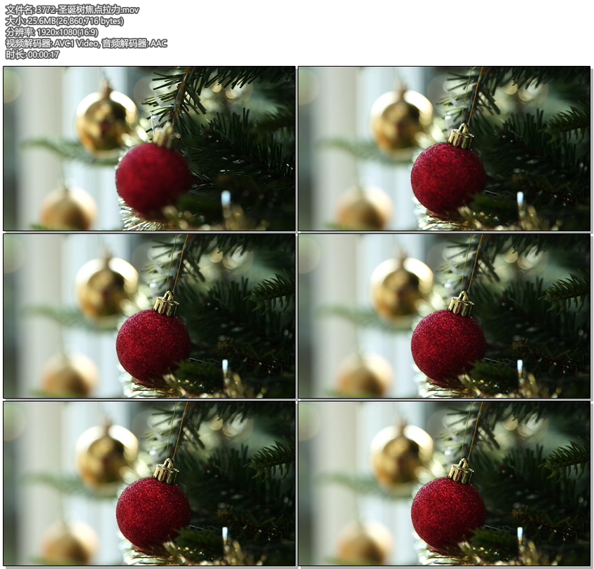 圣诞树上的金色装饰品实拍视频素材下载