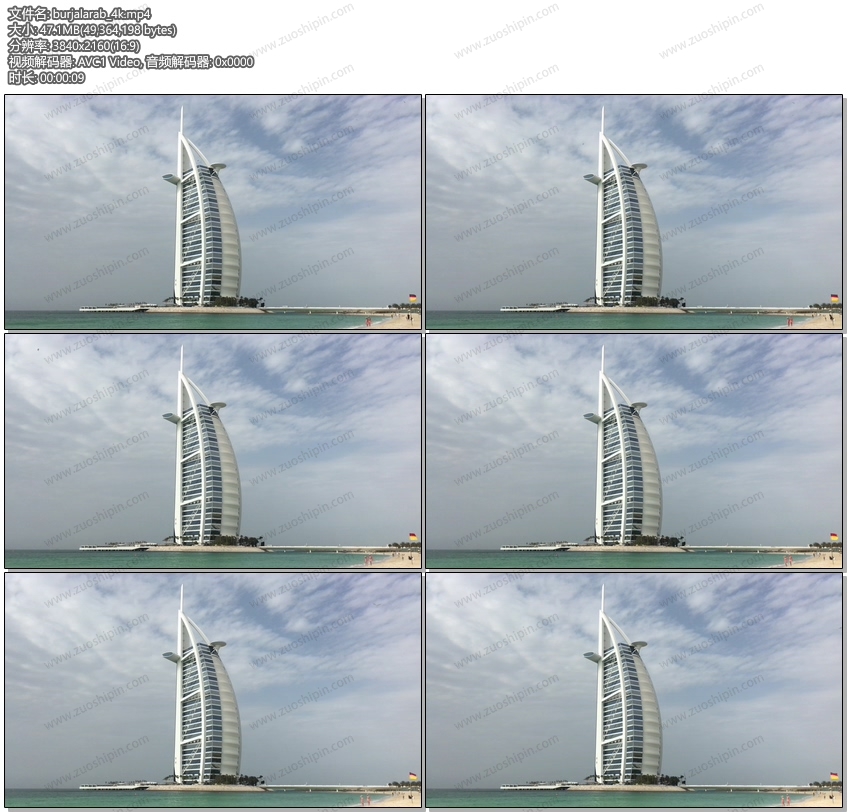 阿拉伯海湾4k海岸线的阿拉伯塔的景色