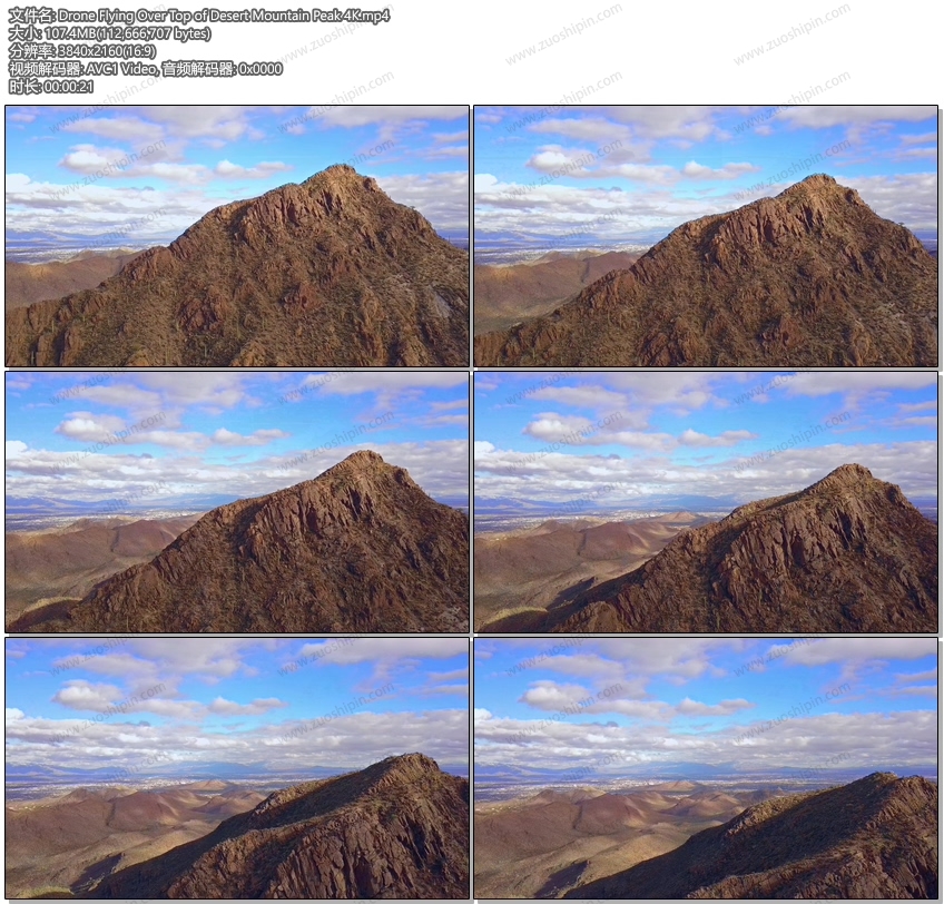 无人机飞过亚利桑那州沙漠中一座1000多英尺高的山顶