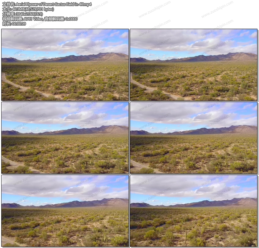 空中看沙漠仙人掌领域4K