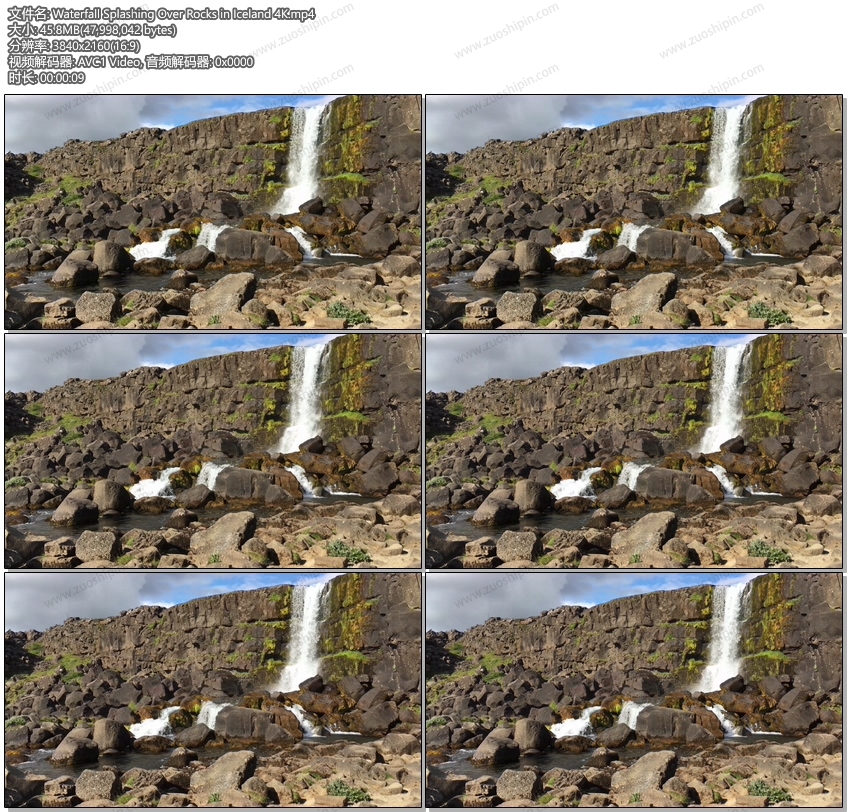 飞溅在岩石上的瀑布在冰岛4K