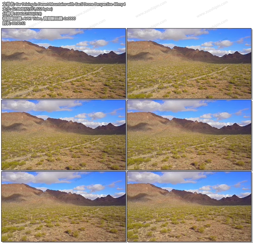 Car Driving in Desert Mountains with Cacti Drone Perspective 4K