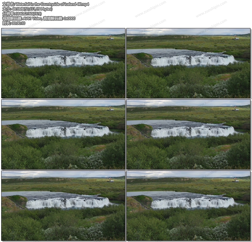 Waterfall in the Countryside of Iceland 4K