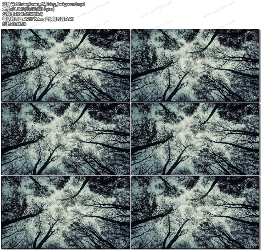 A 4K Living Background looking up at the winter trees. This background can be used in many ways to add life to your video projects. 3840 x 2160
