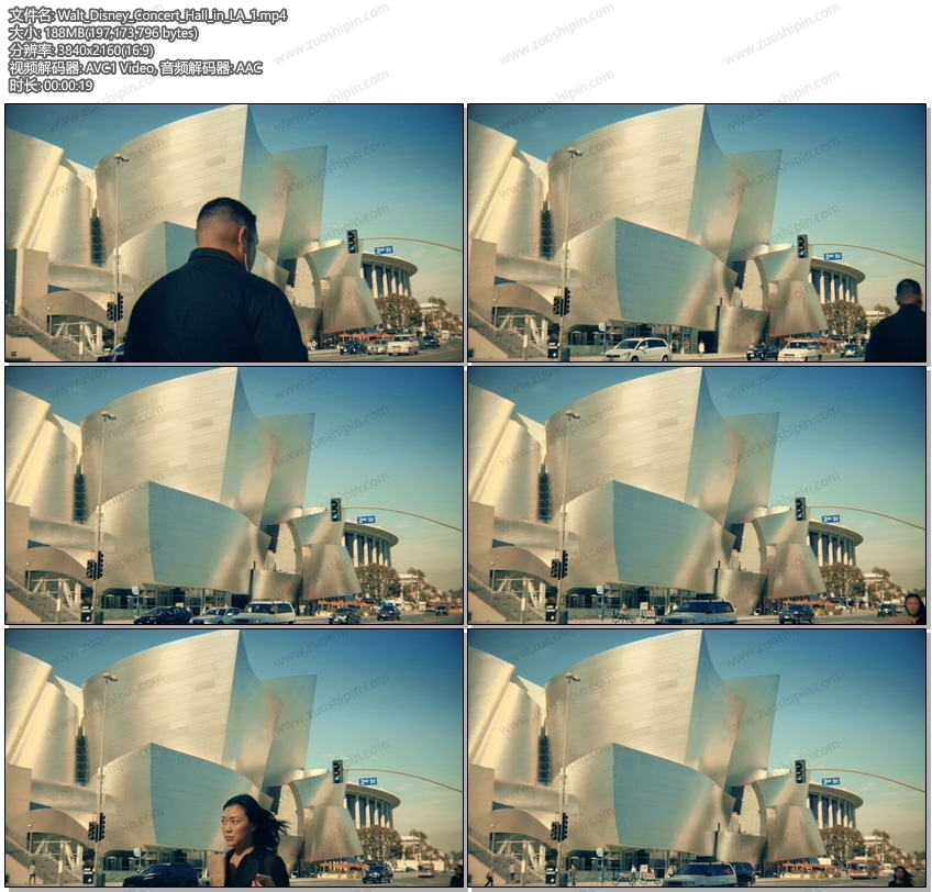沃尔特·迪斯尼音乐厅的前面的手扶的射击在洛杉矶在4K。 华特迪士尼音乐厅前面的手持拍摄在洛杉矶。手持相机拍摄沃尔特迪斯尼音乐厅的临街面,车辆在途中,人们在人行道和人行横道上行走。非常适合您的城市电影项目或您的镜头中的洛杉矶话题。 4K 3840 x 2160 | 30帧/秒