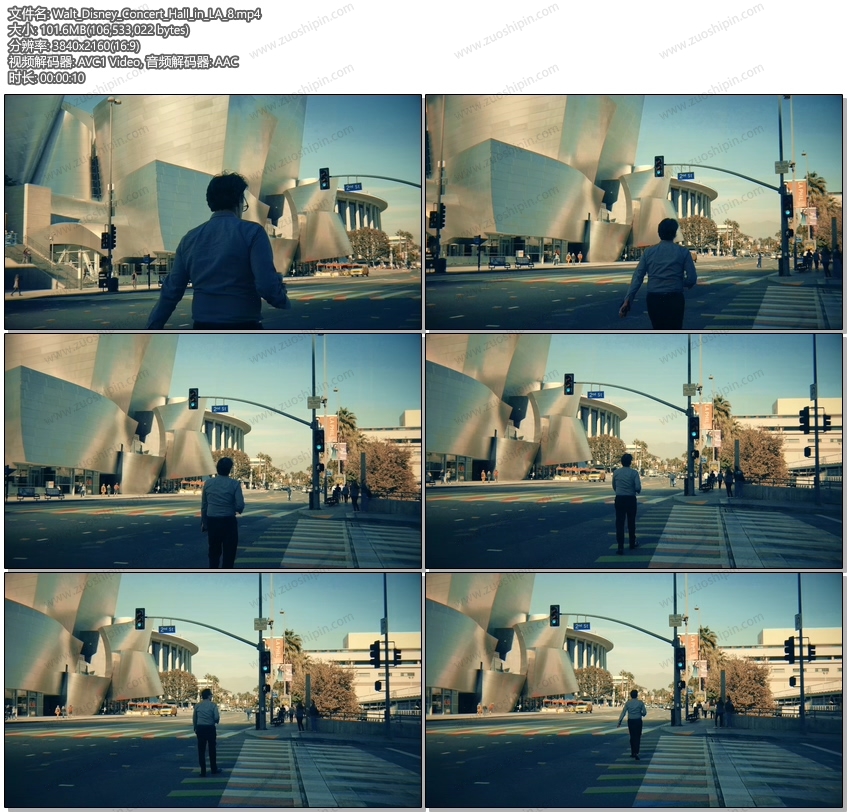 平移镜头从沃尔特·迪斯尼音乐厅的正面朝着4K的洛杉矶人行横道前进。 平移镜头从沃尔特迪斯尼音乐厅的正前方进入洛杉矶的人行横道。沃尔特迪斯尼音乐厅前面的平移镜头正在运输中,人们在人行道和人行横道上行走。非常适合您的城市电影项目或您的镜头中的洛杉矶话题。 4K 3840 x 2160 | 30帧/秒