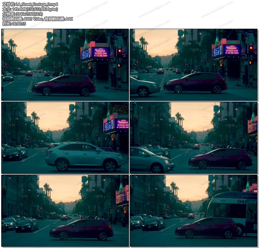 在4K上平移拍摄的街道和汽车在洛杉矶 平移在洛杉矶的街道和汽车的拍摄。相机在洛杉矶与人,汽车,巴士和建筑物平移街道的镜头。非常适合您的城市电影项目或您的镜头中的洛杉矶话题。 4K 3840 x 2160 | 30帧/秒