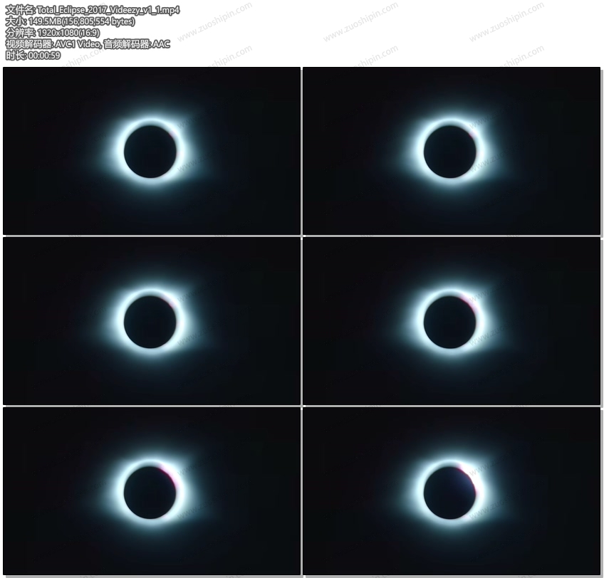 2017年美国全蚀 2017年8月21日在美国南卡罗来纳州格林维尔拍摄的全食日蚀。钻石戒指在此剪辑中可见:52。天空是黑色的,这是在下午2:34,天空通常是明亮的蓝色。没有云层,晴朗的天空。