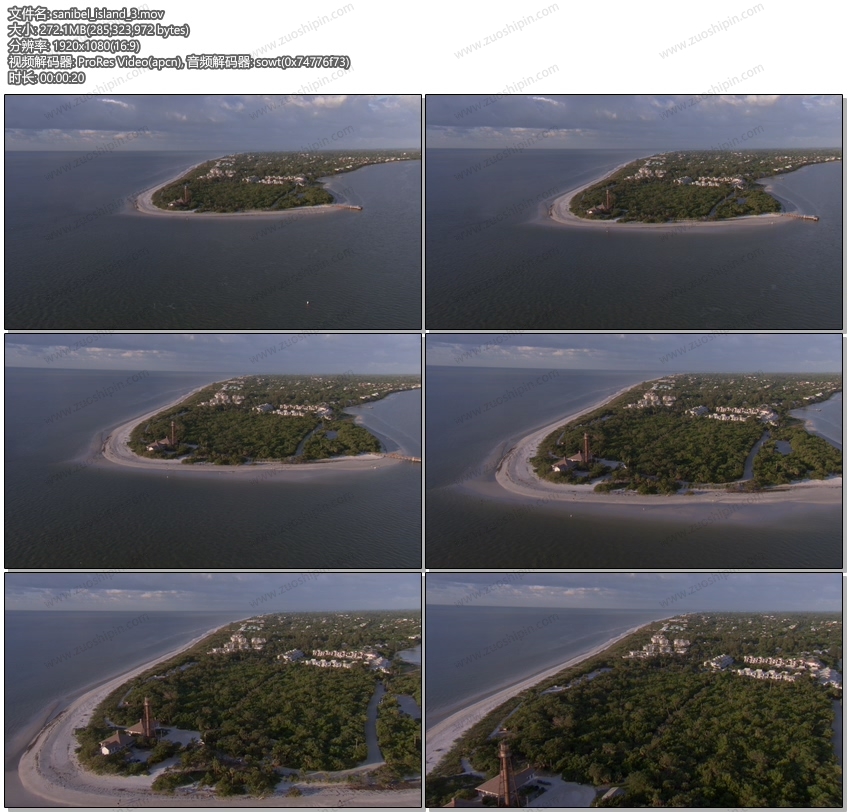 Sanibel海岛海滩空中 从萨尼贝尔岛直升机的空中射击特色在海滩上的塔。