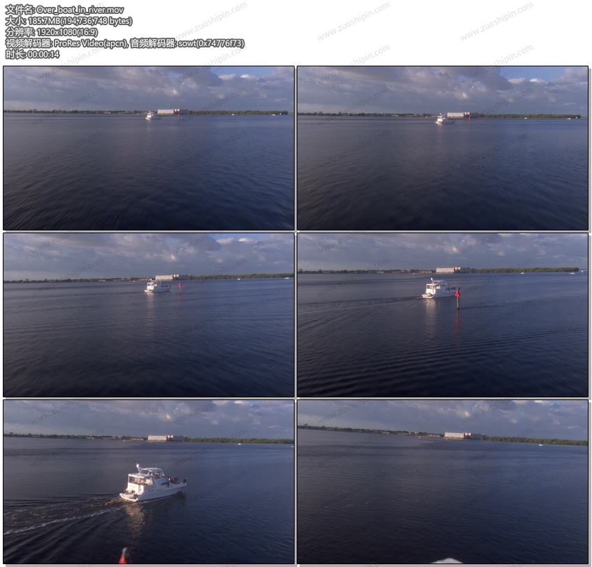 在河的空中立交桥 空中射击从飞行在河的一条小船的直升机。