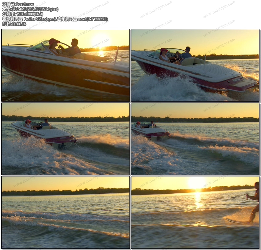 在日落滑水的女人 一名女子在日落时分在湖边滑水。 MOV 1920×1080 24 fps