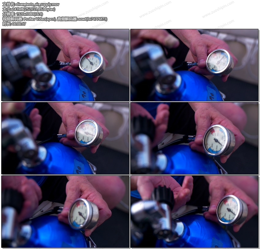 潜水员测试空气供应水平 在潜水前测试潜水员的特写镜头。