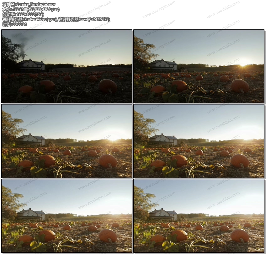 实拍视频> 农场南瓜地的日出延时视频素材Farm sunrise time lapse