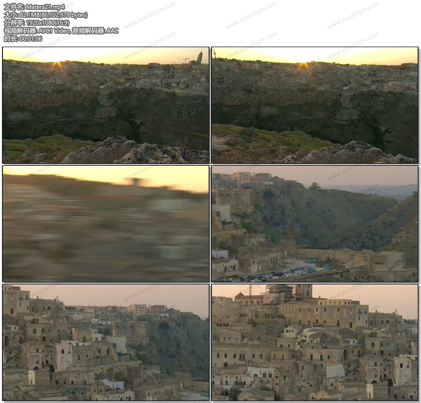 意大利马泰拉的一座钟楼建筑,前面有岩墙视频