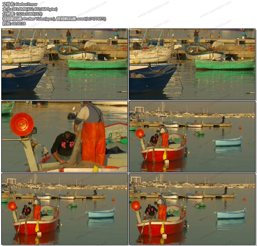 渔夫和船在港口 一个充满小船的港口和一些渔民为了诱饵而固定他们的铸件。