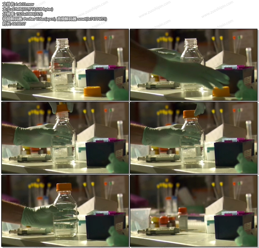 拧紧实验室中的瓶盖 手进入框架,并在科学实验室中将瓶盖拧到瓶子上。