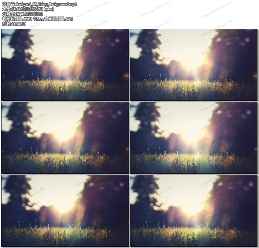 A 4K Living Background of a setting sun in a grassy backyard that can be used in many ways to add life to your video projects. 3840 x 2160