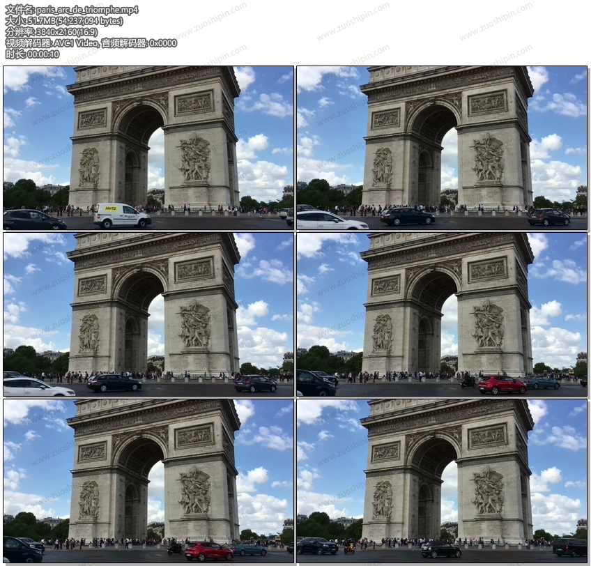 The Arc De Triomphe Traffic Circle in Paris, France 4K