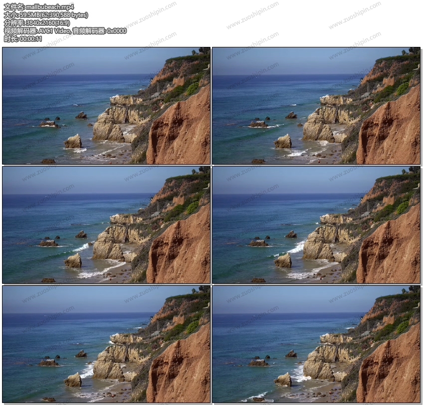 This video contains footage of the Malibu Beach in California crashing against the rocks and cliffs of Southern California.