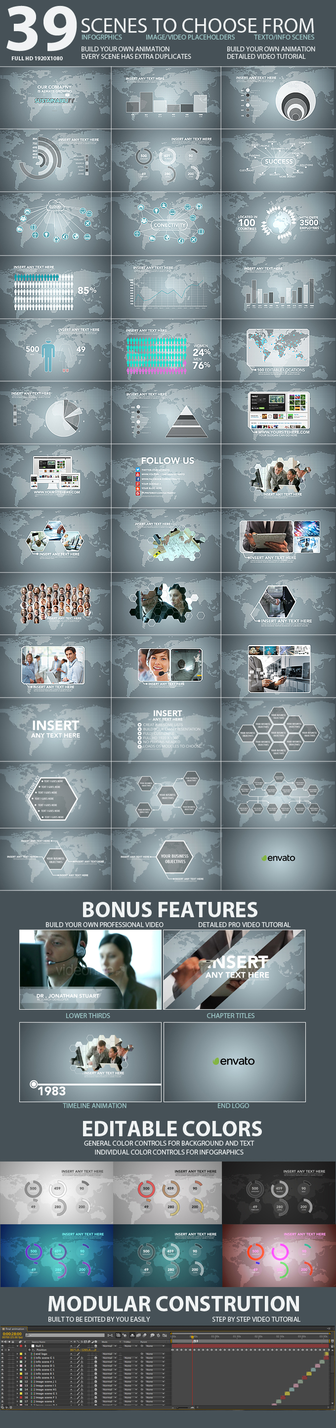 - 39 scenes to choose from. ( image ,text and info graphics)