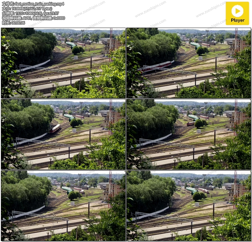 火车站停车场的火车快速运动视频。希望你能用这个火车股票视频!