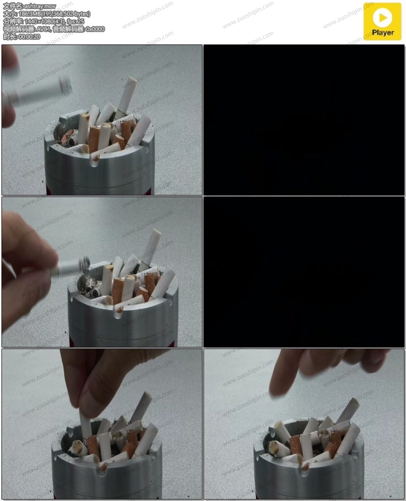 Multiple clips of a hand putting out a cigarette in an ash tray. Not very pretty but might be useful for some!