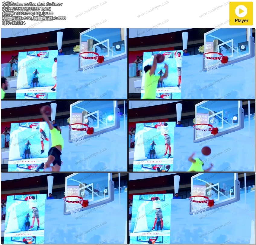 一名男子正在执行灌篮的慢动作视频。希望这个运动高清录影。对您有用。