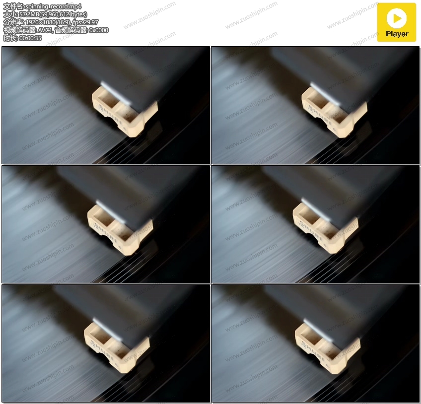 我们这里有一个特写宏观免费股票视频拍摄的旋转乙烯基在舒尔电唱机上,放大记录播放器针。很容易融入各种项目。