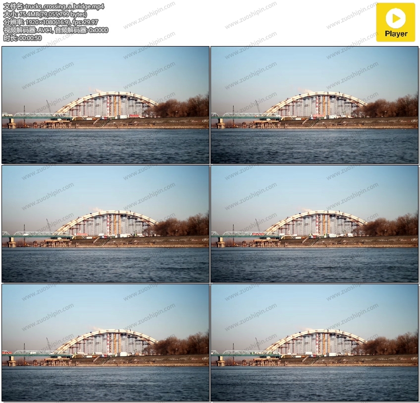 追功网为大家提供高清实拍视频素材城市景观系列素材:河面上的拱形桥梁视频素材在线预览以及高清源文件的下载服务。 卡车穿越桥梁高清股票视频