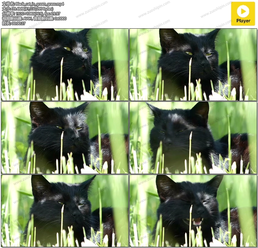 追功网为除夜家供给下浑真拍视频素材动物实拍系列素材:趴在绿色草地上的黑猫打哈气视频素材正在线预览战下浑源文件的下载。