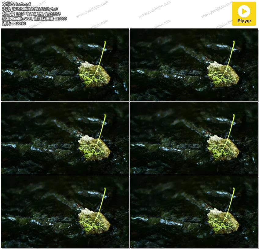 追功网为大家提供高清实拍视频素材自然风景系列素材:清澈河流小溪中的一片落叶视频素材在线预览以及高清源文件的下载服务。