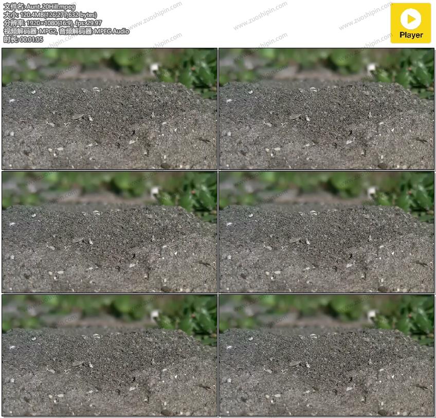 追功网为大家提供高清实拍视频素材动物实拍系列素材:土山上的蚂蚁窝视频素材在线预览以及高清源文件的下载服务。