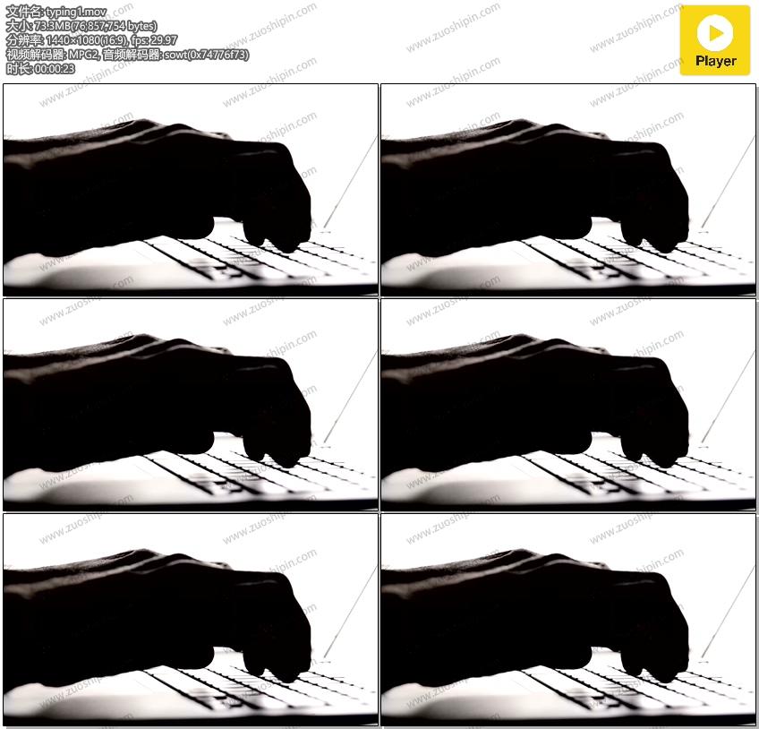 在高清晰度拍摄的自由键入高清视频。这个打字高清视频是剪影风格的剪辑与一双手在笔记本电脑上打字。