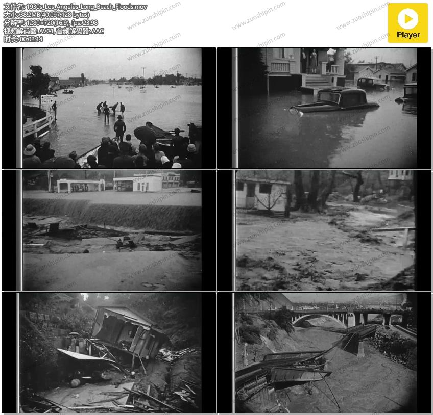 Free HD Archive Footage circa 1938-39 of Los Angeles/Long Beach Floods