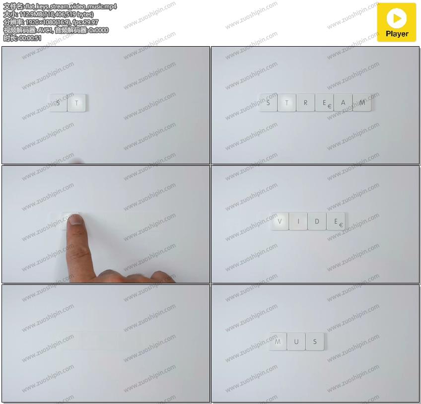 追功网为大家提供高清实拍视频素材视觉创意系列素材:键盘按键组成音乐stream和video单词视频素材在线预览以及高清源文件的下载服务。平键流 - 视频音乐