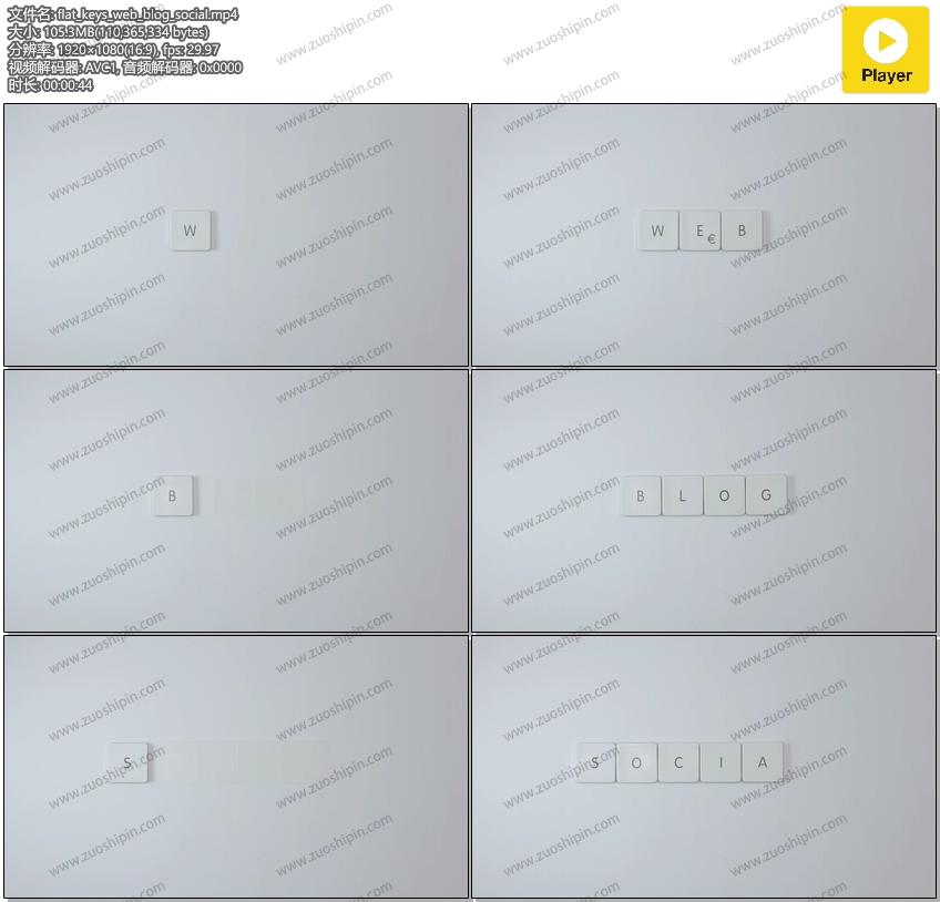 追功网为大家提供高清实拍视频素材视觉创意系列素材:键盘按键组成web-blog-social单词视频素材在线预览以及高清源文件的下载服务。平键web-blog-social