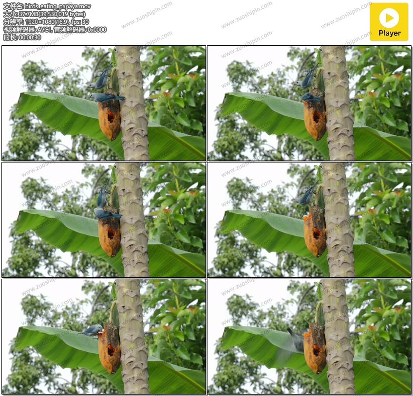 追功网为大家提供高清实拍视频素材动物实拍系列素材:鸟吃树上的木瓜视频素材在线预览以及高清源文件的下载服务。鸟吃木瓜