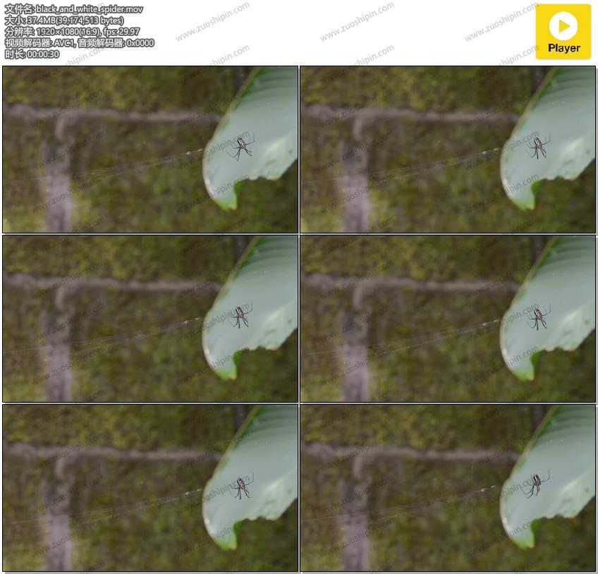 追功网为大家提供高清实拍视频素材动物实拍系列素材:树叶前的黑白蜘蛛视频素材在线预览以及高清源文件的下载服务。黑白蜘蛛