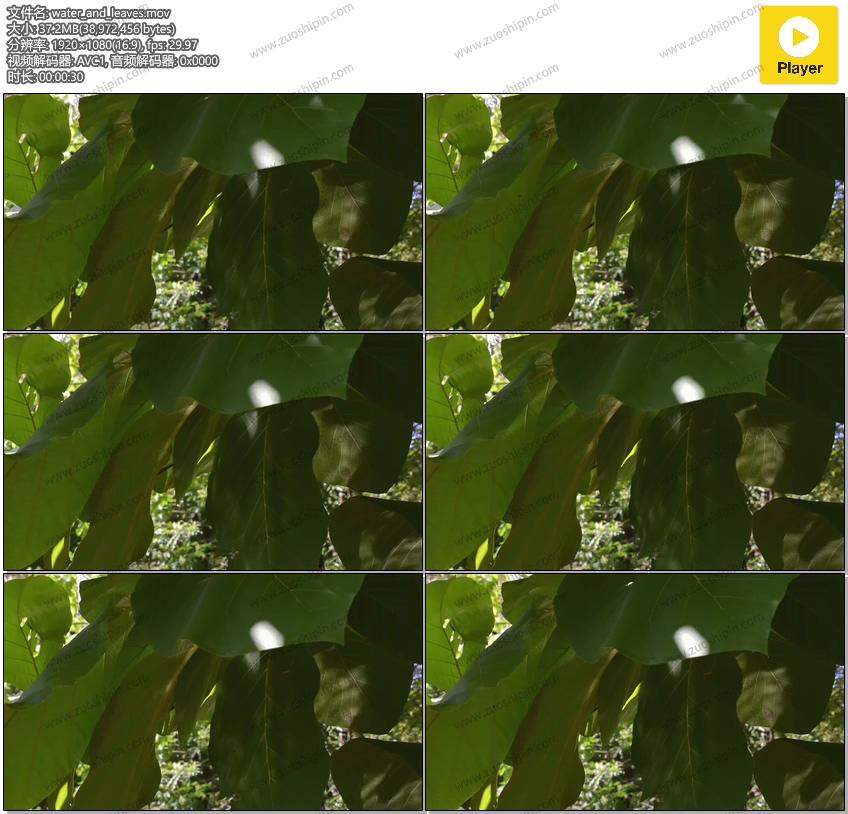 Leaf and water video clip for your outdoor projects or rain topics in your footage.