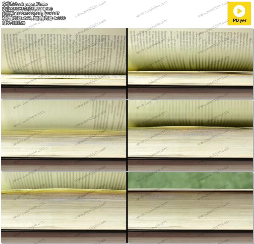 横向书页 closeup video clip for your school projects or book topics in your footage.